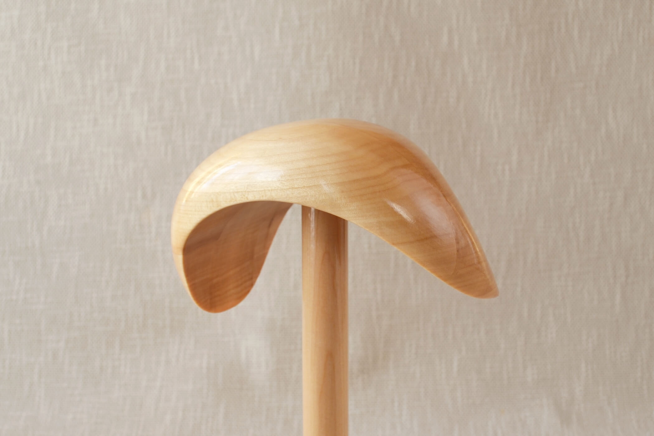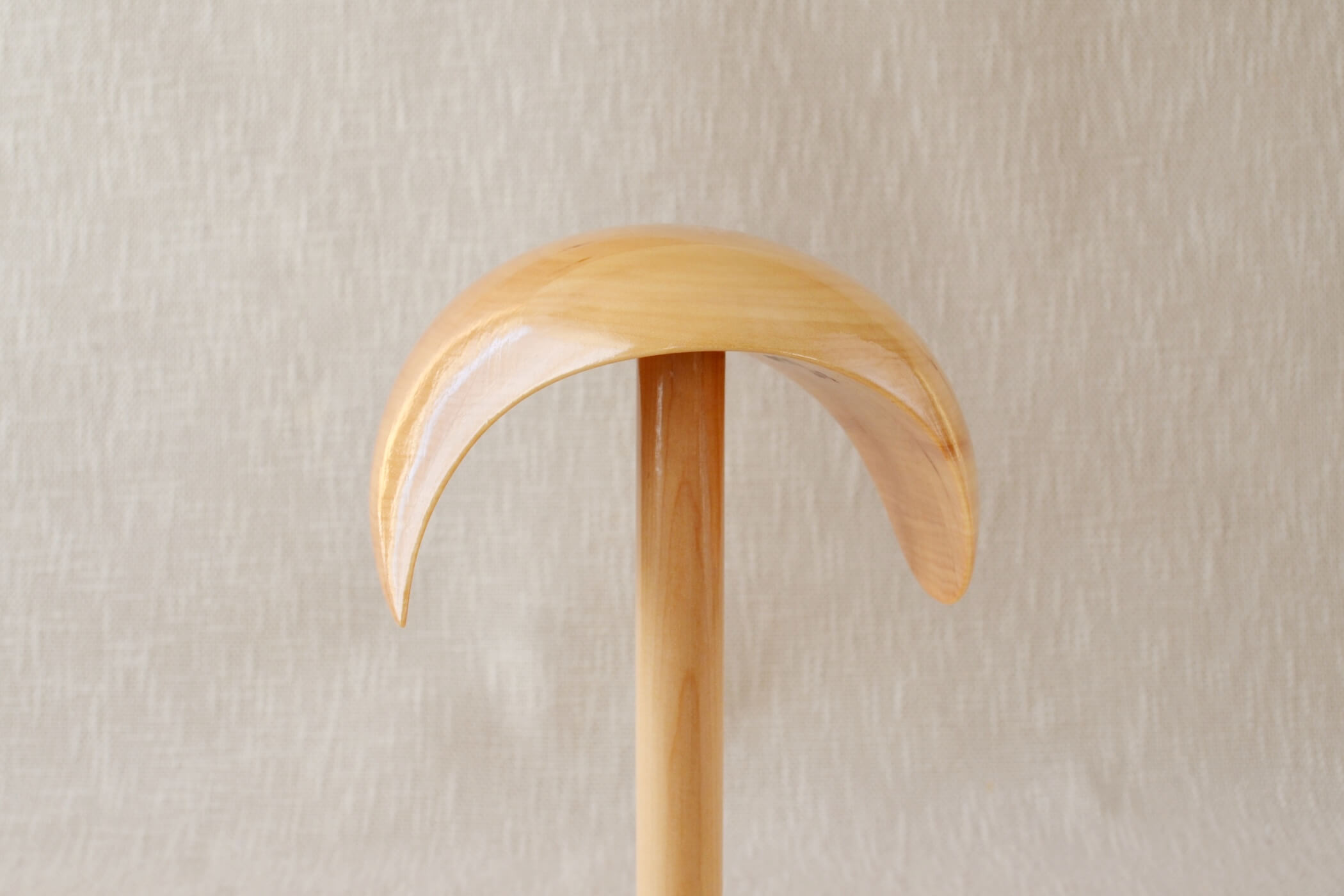 This hat block is made from lime. This is a local tree that is widely spread in Northern Europe. It is a soft material and easy to pin.
