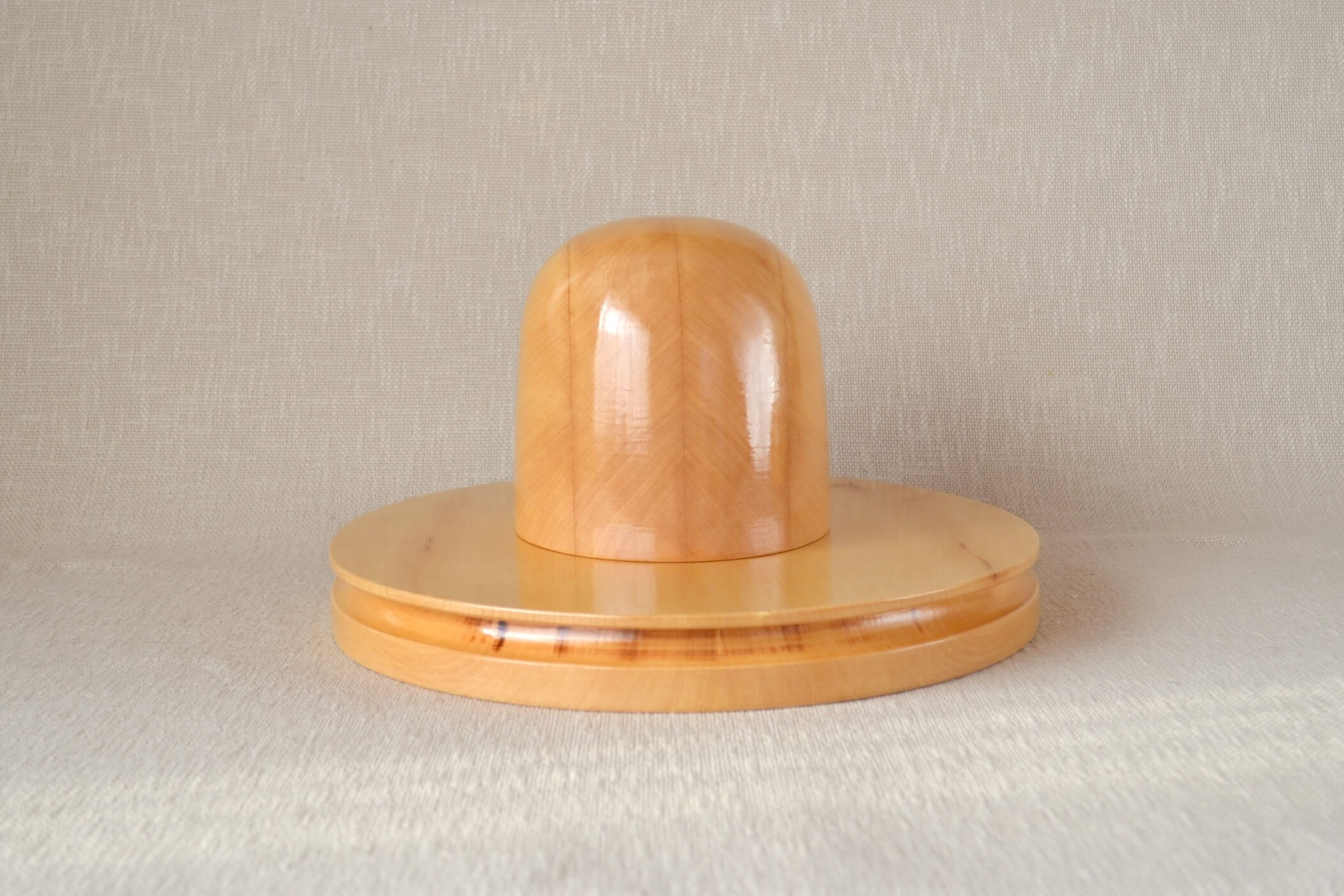 This hat block set is made from lime. This is a local tree that is widely spread in Northern Europe. It is a soft material and easy to pin.